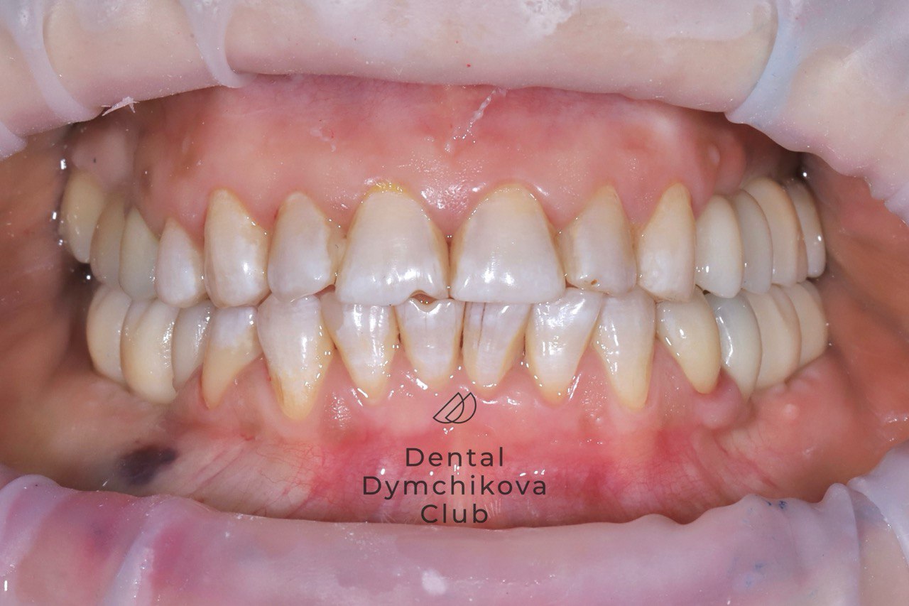 История болезни: несколько лет назад был установлен мост на передние зубы 1.2, 1.1, 2.2