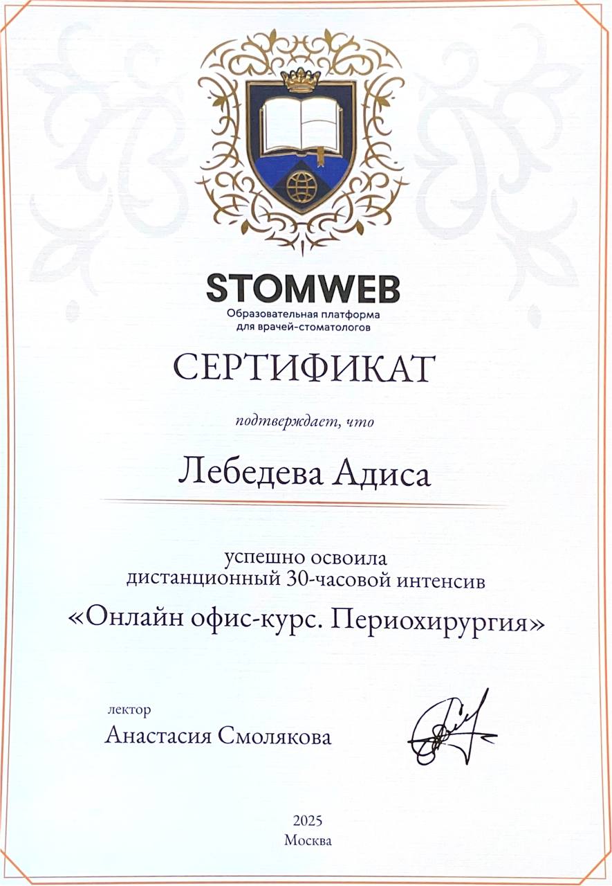 Прошла учебный курс "Онлайн офис-курс. Периохирургия"